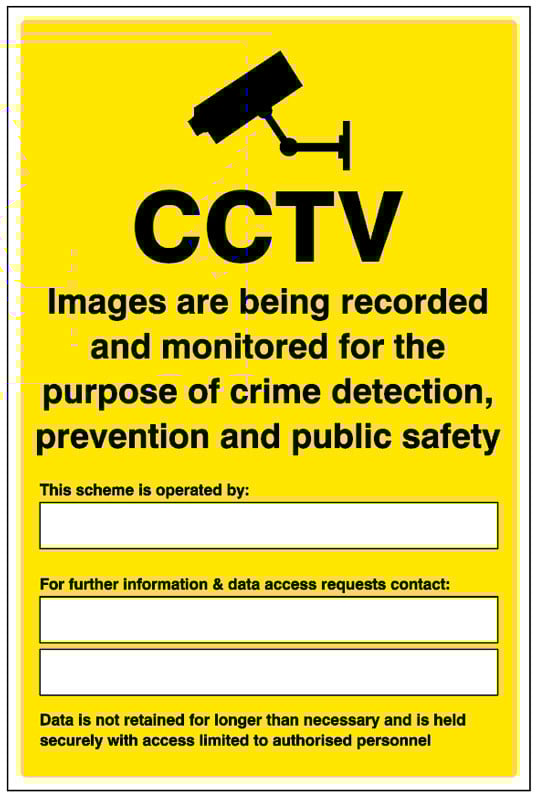 As per ICO recommendations you must let people know that they are in an area where a CCTV system is being operated. The most effective way of doing this is by using prominently placed signs at the entrance to the surveillance zone and then reinforcing with further signs within the area being monitored.
