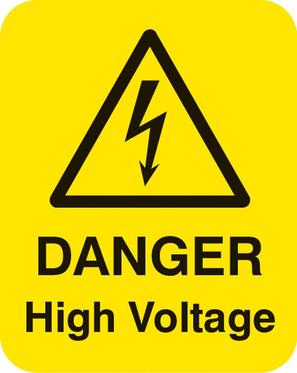 Tough and non-rip polypropylene, self-adhesive backed labels Roll of 100 easy peel, self-adhesive electrical hazard labels.