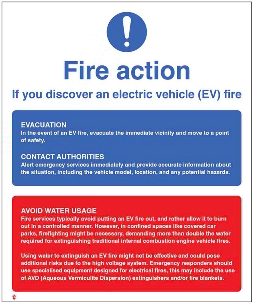 The sign helps prevent panic by explaining that residents don’t need to evacuate immediately if the fire is elsewhere. It instructs them to stay inside, keep doors and windows closed, call the fire brigade, and wait for instructions—helping keep escape routes clear for those who need urgent assistance.