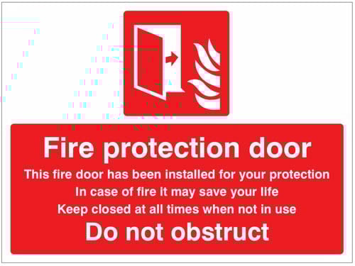 A fire door tends to be an internal wooden one whose purpose is to enable an emergency escape route through a property and help to compartmentalise a fire, preventing the spread of smoke and flames. These doors do not have to be a fire rated fire door and are usually identified by a sign with a blue circle and white text. Alternatively, a fire protection door must have a proven fire rating that is at least as high as the rest of the building's structure. This fire rating includes the entire door assembly comprising the door frame, any glazing, intumescent fire and smoke seals and all the door furniture, such as hinges, door closers, latches and locks. Here in the United Kingdom a fire resisting door set should be subjected to either a British Standard Fire Test BS 476 Part 22 1987, or a BS/EN 1634-1 2000 test.