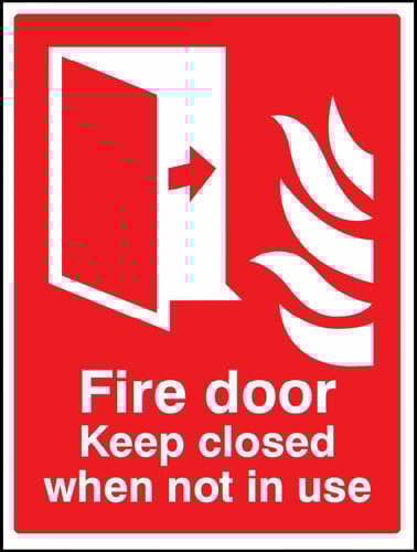 Every fire door should have an appropriate "Fire door" sign fitted. Where doors can be used from either side a sign is required on both sides. Doors which open on to a fire escape corridor should be locked shut and signed accordingly.