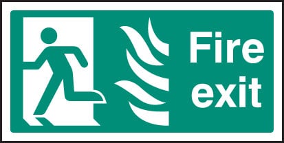 Some hospitals and health services still display fire exit signs with flames (in accordance with the superseded Hospital Technical Memorandum 65). NHS organisations are now expected to comply with the standard ISO 7010 signage.