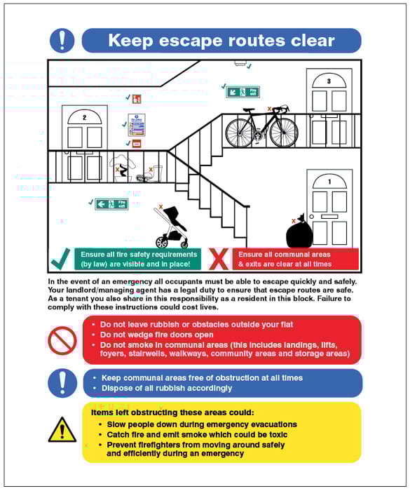 Keep Escape Routes Clear - Multiple Occupancy - Safety SignGTSE Signs£2.95 – £11.56