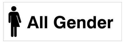 A sign designed to be all-inclusive of gender. Helps compliance with the Equality Act and removes doubt or uncertainty of who can/cannot use the washroom or toilet.
