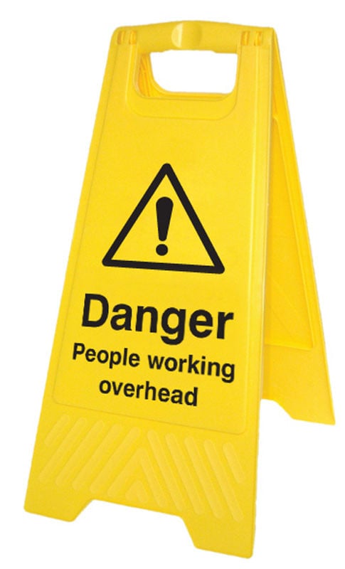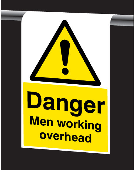 This highly durable roll top sign has been designed to neatly hook over scaffolding.