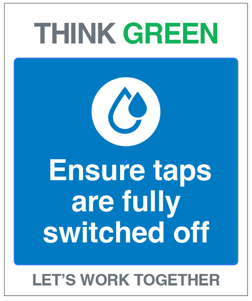 Designed to encourage staff, visitors, and customers to adopt environmentally responsible behaviours. It serves as a visual reminder to reduce landfill waste, conserve resources, and support sustainable practices within the workplace or public spaces.