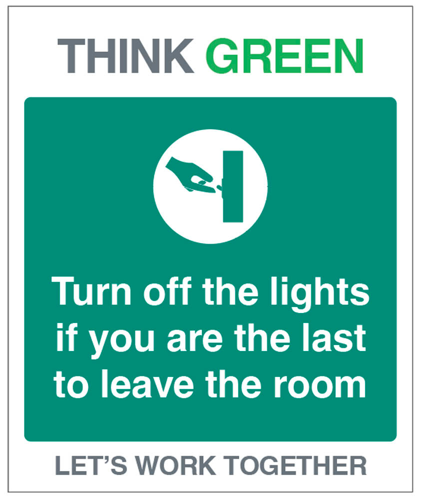 Think Green Let's Work together Switch off When Not in Use - 200 x 300mmGTSE Signs£4.90 – £7.55