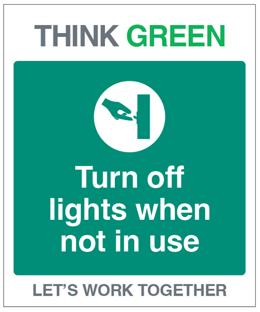 Think Green Let's Work together Turn off Lights When Not in Use - 200 x 300mmGTSE Signs£4.90 – £7.55
