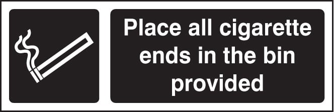 Under BS EN ISO 7010 and BS 5499, as with First Aid signs and Fire Exits, signs relating to Designated Smoking Areas are deemed as Safe Condition signs. These signs should always use white text on a green background, alongside a tick or appropriate symbol. Whilst we actively endorse and, wherever possible, adhere to the relevant Standards, we feel in this specific instance signs permitting smoking should under no circumstance be deemed as?safe?. In acknowledgement of the damaging affects of smoking, please note our range of signs utilises black to clearly differentiate these signs from Safe Condition signs.
