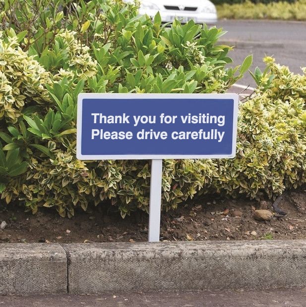 The verge sign is one complete unit comprising of a 450x150mm aluminium sign fixed to an 800mm high channelled post. Allows quick installation into grass verges, car parks etc. 2mm White powder coated aluminium plate on 800mm pole.