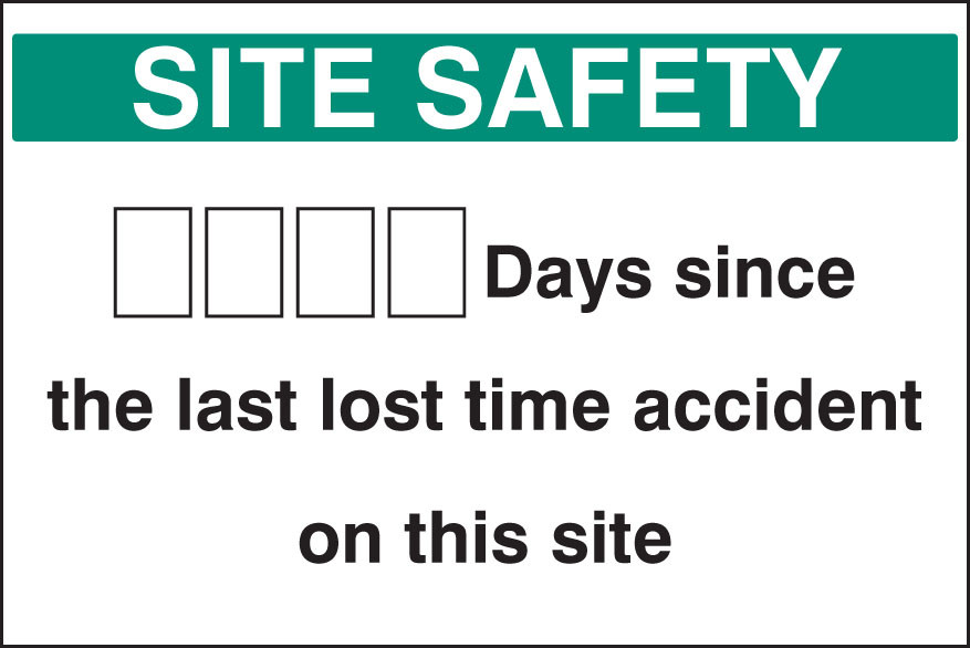 5mm bright white foam PVC Lost accident signs help to reinforce your safety policy and encourage personnel on site to stay accident free. Includes sets of numbers to slide into acrylic slots to allow easy update of the display on a daily basis.